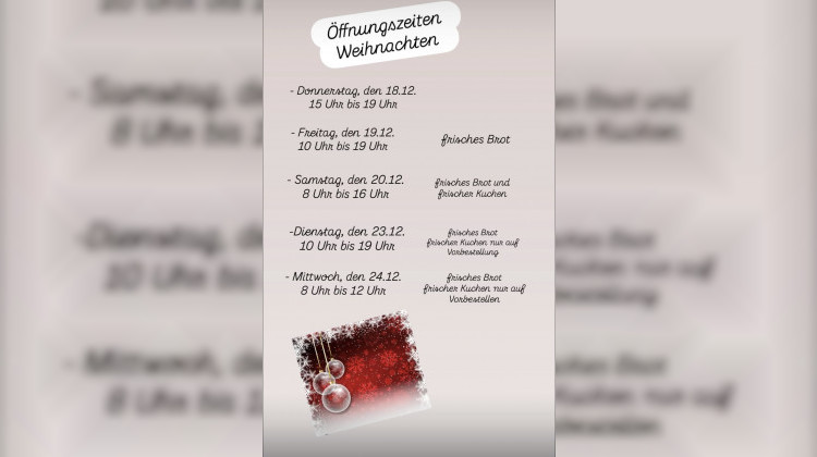 Unsere Öffnungszeiten an Weihnachten: