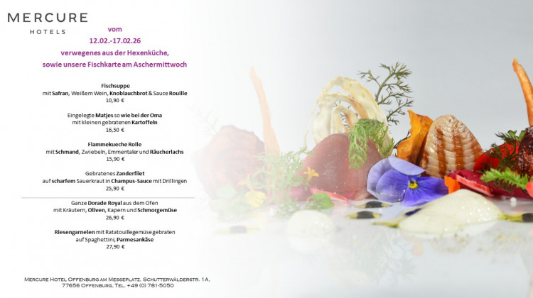 Das Mercure Hotel in Offenburg am Messeplatz ist in nur 5 Fahrminuten von der Autobahn A5 Basel-Heidelberg erreichbar. Dank der verkehrsgünstigen Lage und der Nähe zum Offenburger Zentrum, ist unser Hotel der ideale Ausgangspunkt für Touristen und Geschäftsreisende. Modernste Tagungs- und Banketträume, in Größen von 32 - 300qm, für bis zu 300 Personen, machen unser Haus zur ersten Adresse für Ihre Veranstaltung. Für Freude an gutem Essen ist ebenfalls gesorgt. Das Restaurant "Hofkammer" empfängt Sie im traditionellen, Schwarzwaldambiente und in der romantischen Weinstube "Schenke" lernen Sie badische Lebensart zu schätzen. Zum Wohlfühlen laden Sie unsere 132 klimatisierten Zimmer und Suiten ein. Nichtraucherzimmer und Parkplätze (kostenpflichtig) stehen zu Ihrer Verfügung. Eine erholsame Zeit genießen Sie im Panoramaschwimmbad mit Sauna, der Infrarotkabine oder unsererm Fitnessraum. Hotel-Extras Alle Zimmer sind klimatisiert und verfügen über Flat-Screen, Telefon sowie Wasserkocher. Direkt am Messegelände nur wenige Minuten fußläufig ins Stadtzentrum, 2km zur Auffahrt der A5 Zentrale Lage zwischen Strasbourg, Freiburg, Schwarzwald, Baden-Baden, Colmar und Europa Park Kostenfreies WLAN im kompletten Hotel und kostenfreien Internet-Terminals in der Lobby